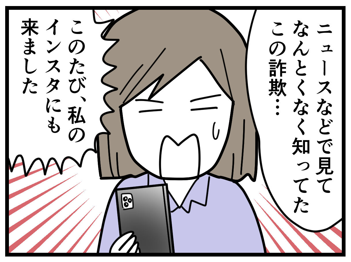 最初は詐欺かなと思いつつ、詐欺かそうでないかを確かめるために子育ての合間の暇な時に相手をしていて、会話が途切れると「今忙しいですか?おしゃべりをしませんか?」と催促が鬱陶しいので結局ブロックしました。同じように、日本に興味がある言葉の拙い外国人かと思ったんです。その後同じような文面が別の投稿を元に来たので、なんだ詐欺かと気づきました