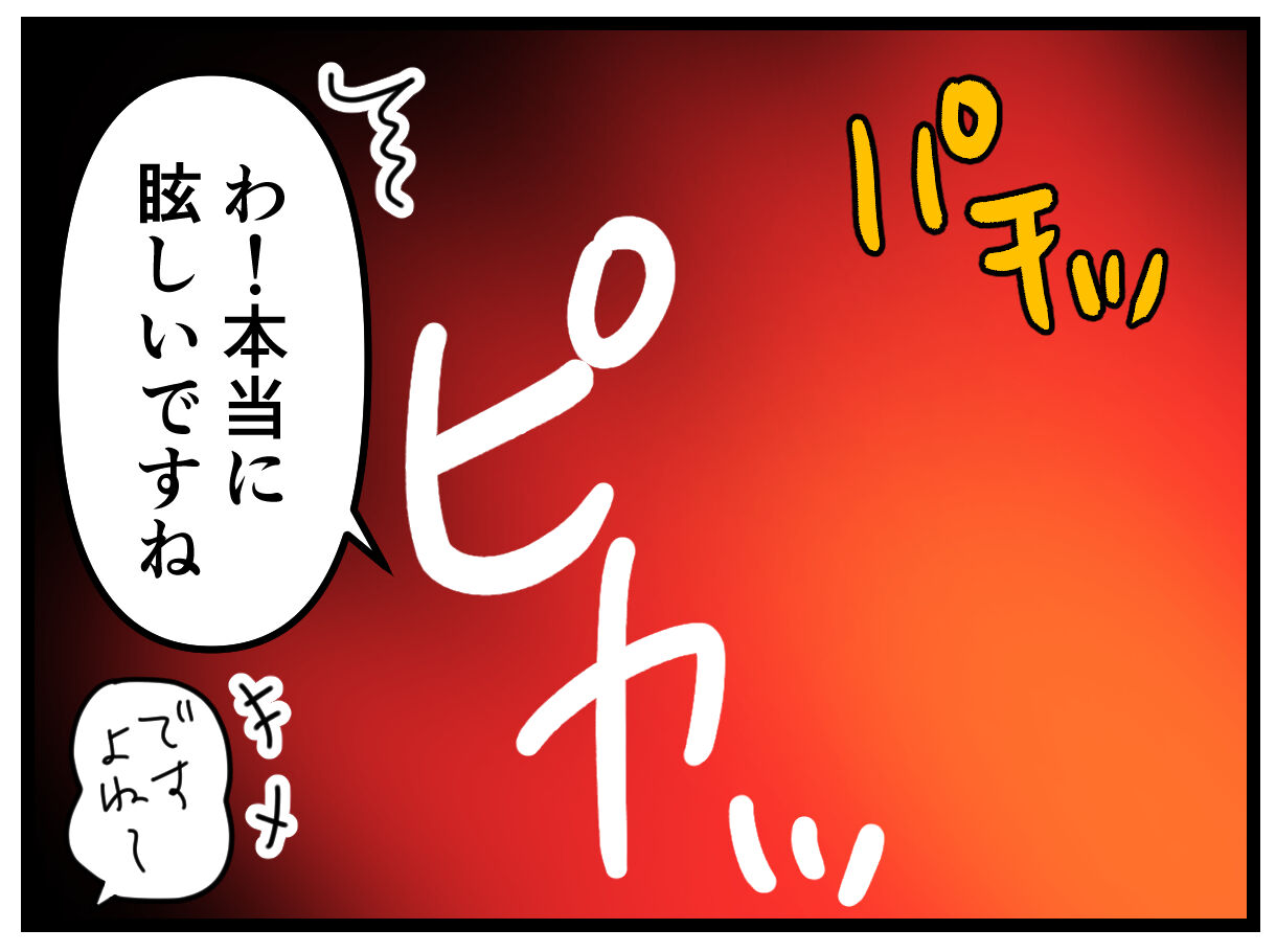 凄かった~。目を閉じてるのか開いてるのか分からなくなるくらい眩しかった。
