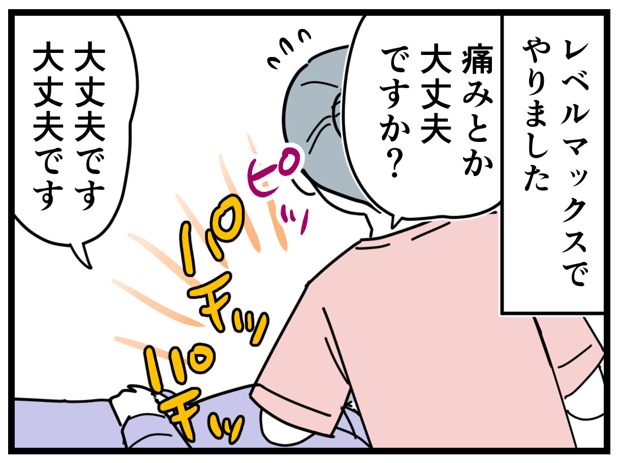 レベルマックスでやる人がほとんどいないのか、看護師さんにかなり心配されました。