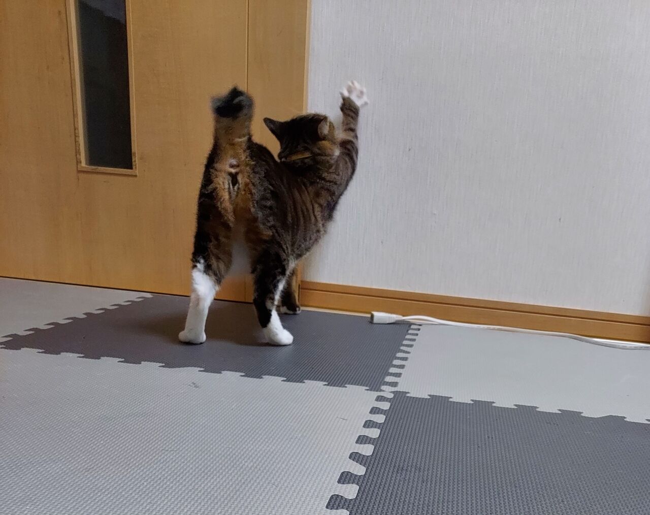これは一見して壁で爪とぎをしているように見えますが、