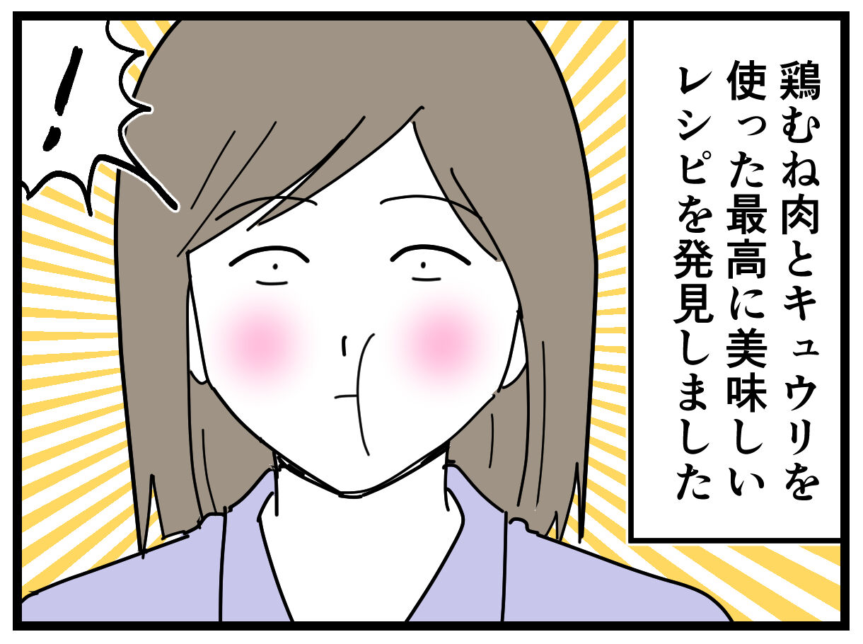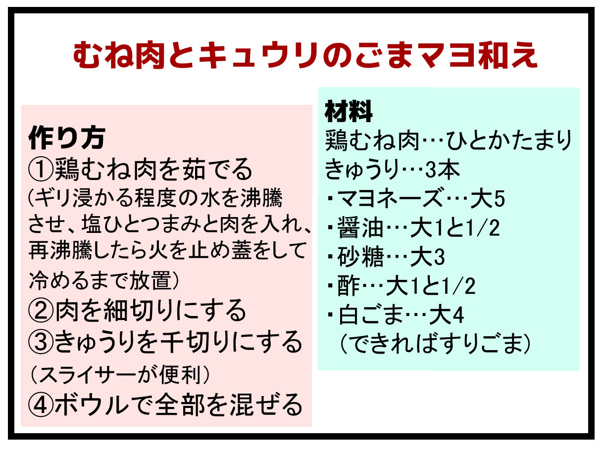 このレシピはささみだったので、これをむね肉に変えて、キュウリを増やしました。
