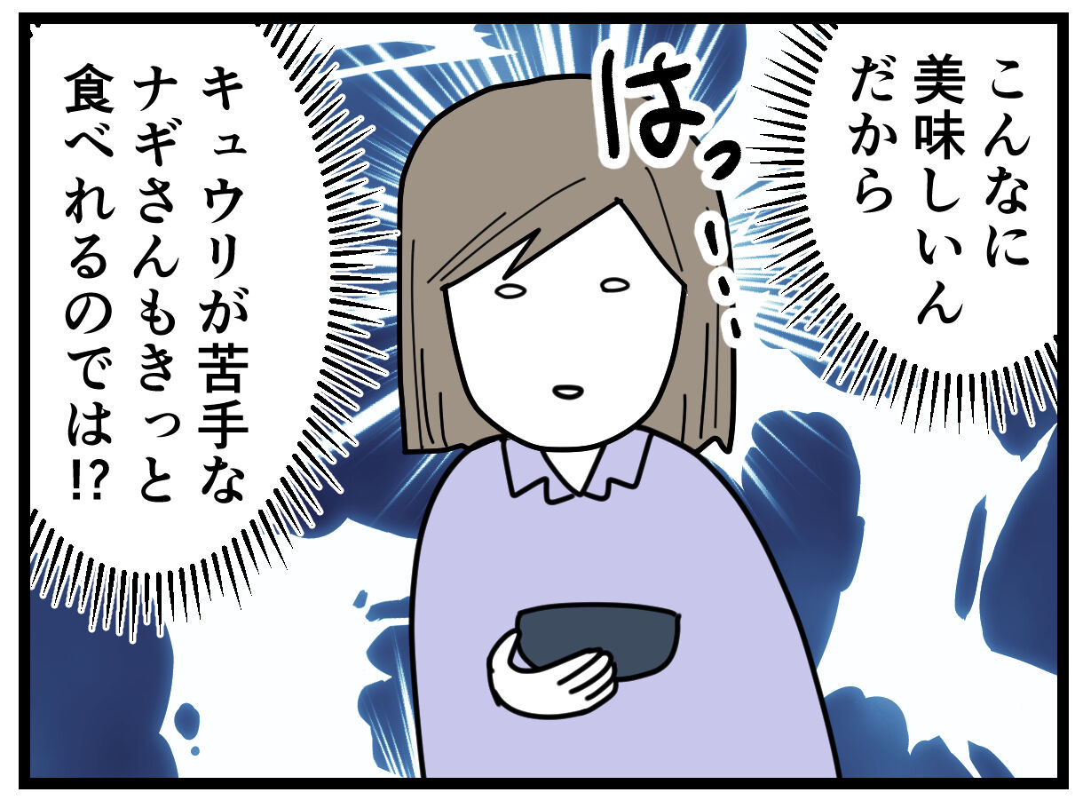 キュウリの味やにおいを完全に消せたらよかったんでしょうね…。