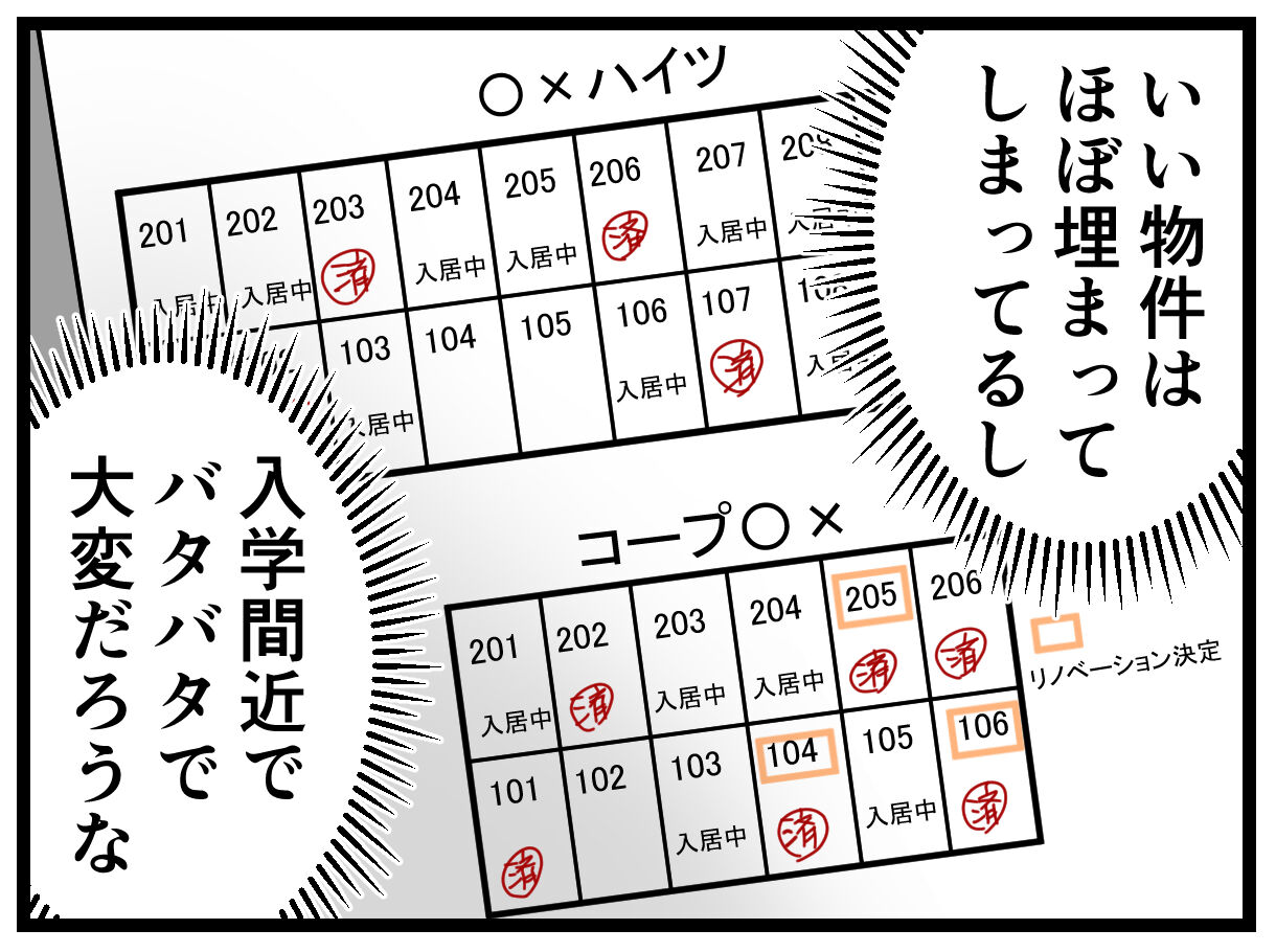 最後の方になると、いい感じの物件は既に全室埋まってしまっていました。