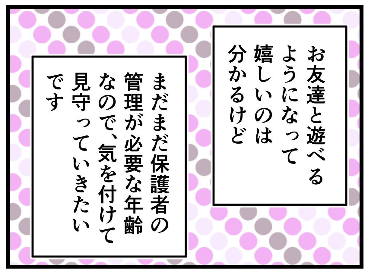 今後行動範囲も広がってくると思うので、そのつど話をして約束を決めつつやっていこうと思います。