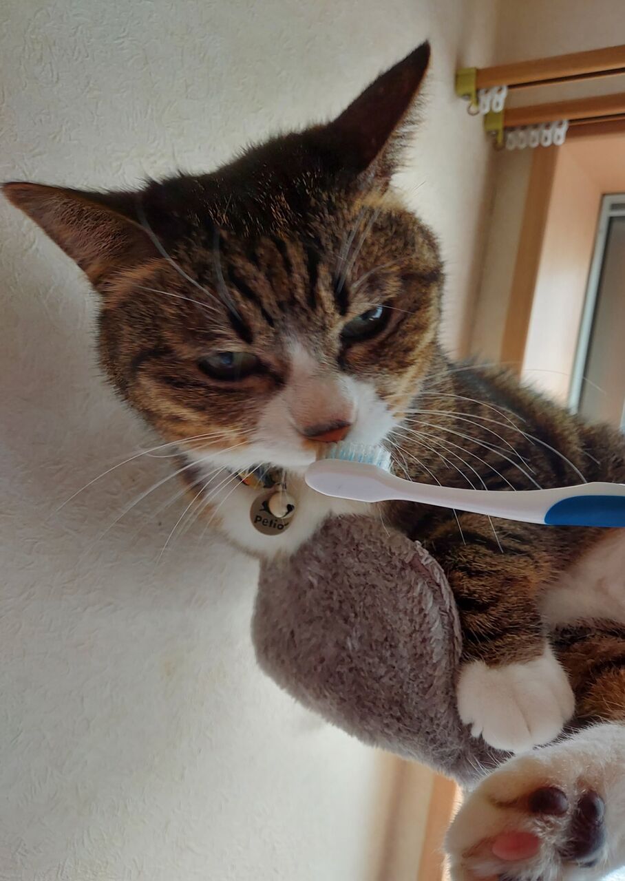 これはトット専用の歯ブラシで、アゴの猫ニキビをお掃除する時とかに使っています。