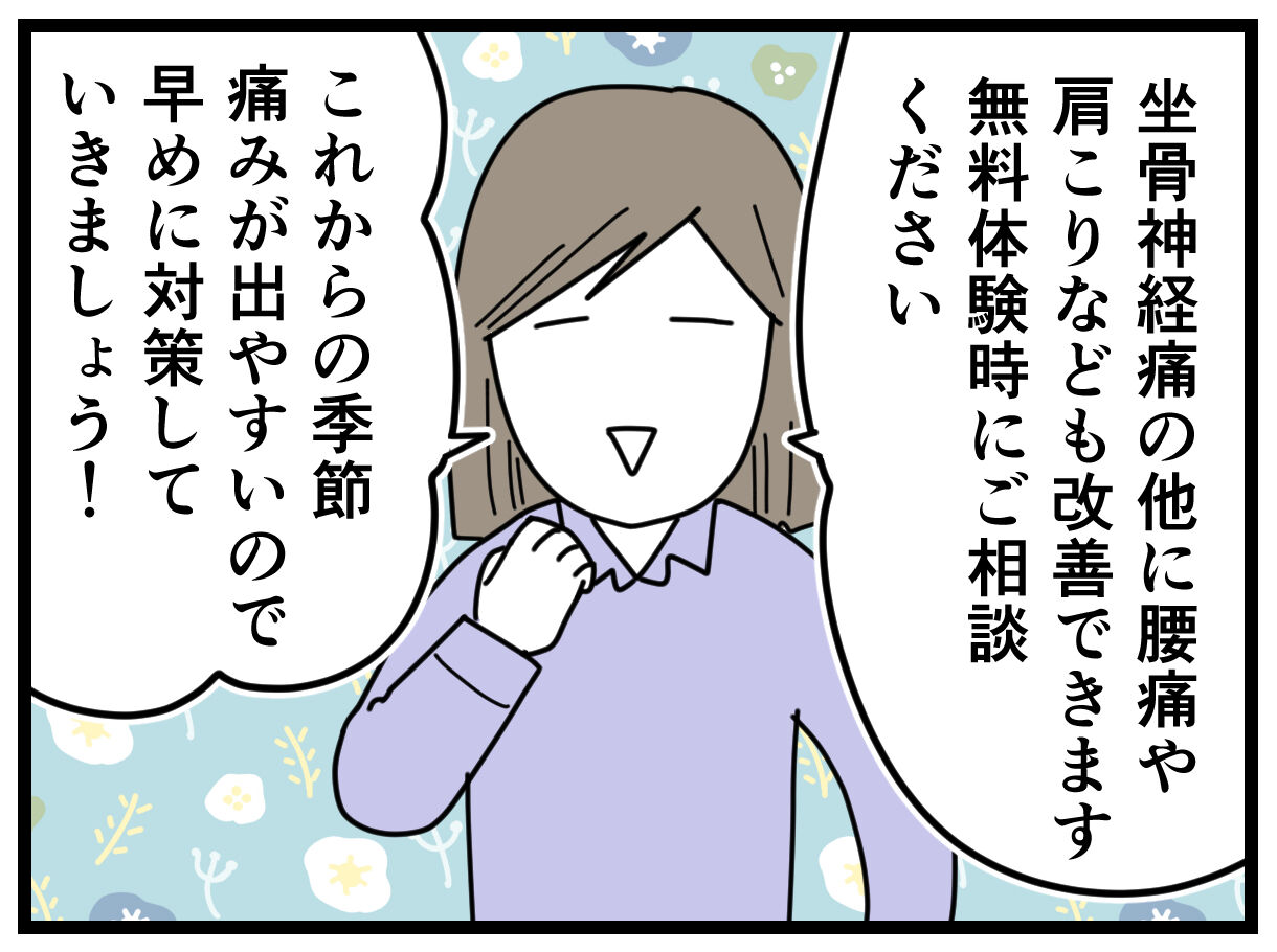 施術してもらってもらうと楽にはなるけど、しばらく経つとまた痛くなるんです。