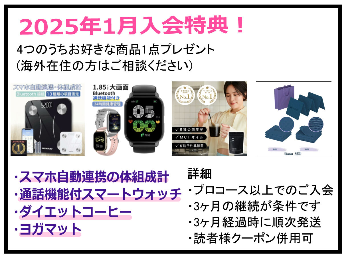 今なら入会特典もあります。この入会特典、去年から始まったんだったかな?