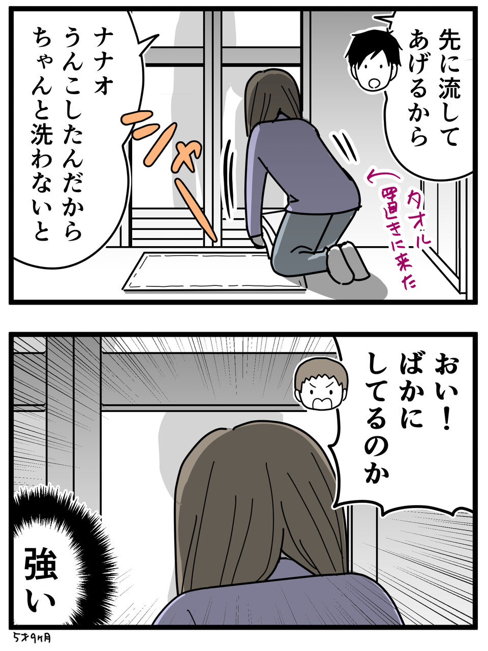 ナナオ、うんちが出る時は「うんちも!」と叫ぶんですけど