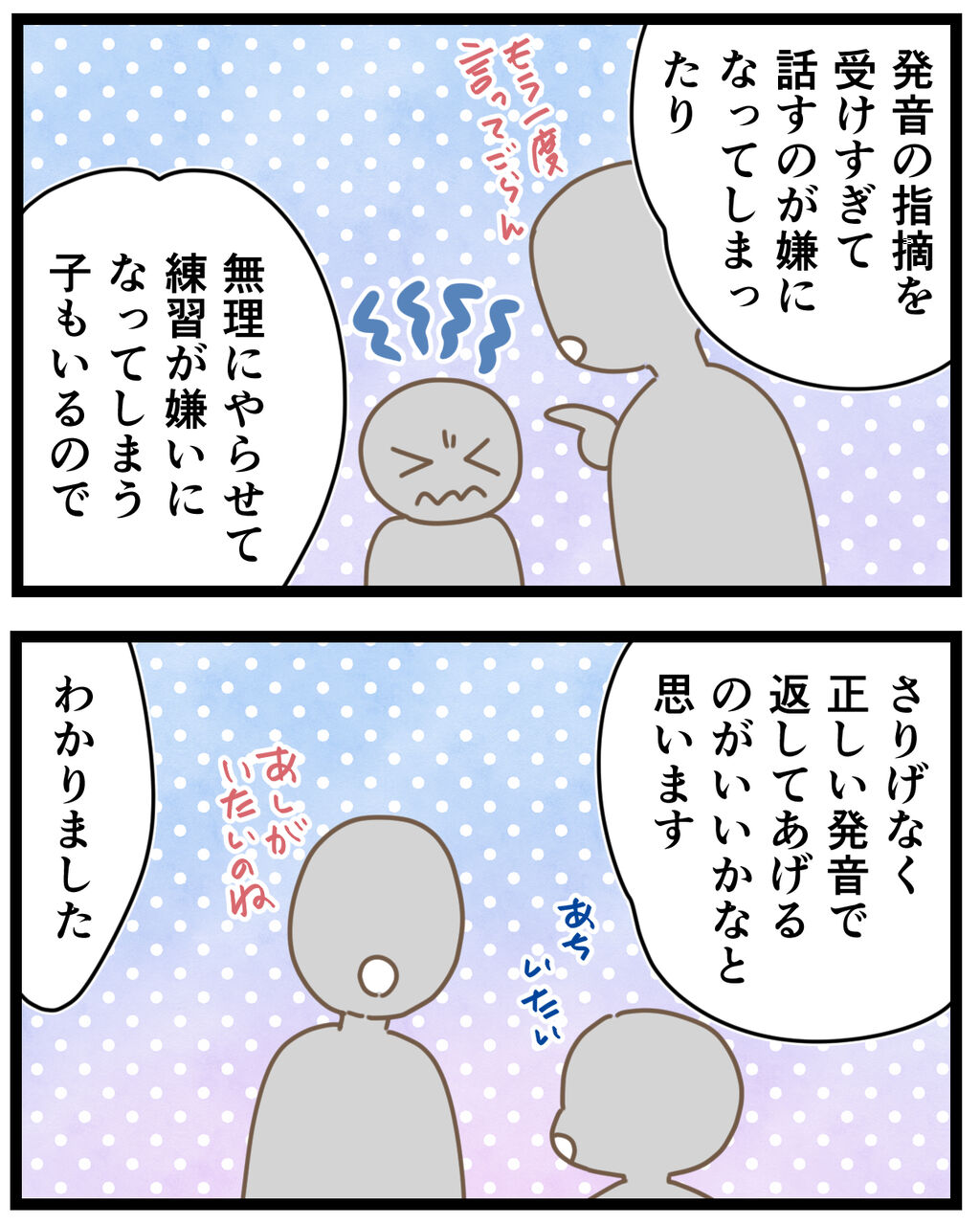 私もムーコの授業参観の時に、何度も言い間違ってしまう子に他の子がしつこく指摘してしまい、先生が止めるというシーンを目にしたことがあります。