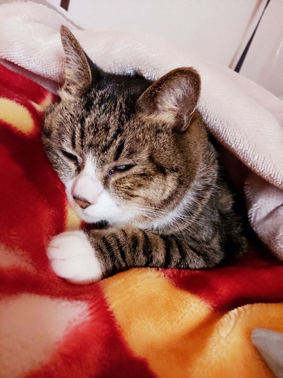 布団の、もり上がってる部分を上手くまくらにしていますね。